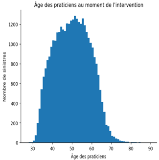 Bonne nouvelle l’âge n’est pas forcément corrélé à une fréquence de mise en cause plus élevée. (Graphiques 3,4). Sur cette courbe de Gauss, on constate qu’en moyenne le pic de mises en cause est à l’âge de 55 ans. En effet il y a plus de réclamations au moment de l’acte après cet âge.