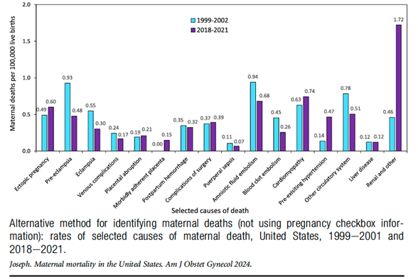 Une même constatation ressort de l’étude des mortalités maternelles aux USA où la distinction de mort maternelle par plaie chirurgicale est faite (schéma 2).