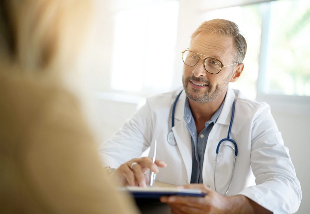Médecin avec un stéthoscope discutant avec un patient